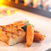 Chargrilled fresh tuna steak (served medium rare) on classic Niçoise salad with French beans, cherry tomatoes, black olives, peppers, new potatoes, egg, baby gem lettuce and red onion